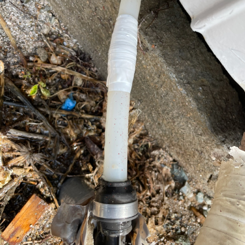 架橋ポリエレン菅が剥き出しになり配管が割れて