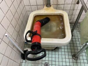 お伺いしたところ、トイレに設置されている汚物流しが水でいっぱいの状態でした。